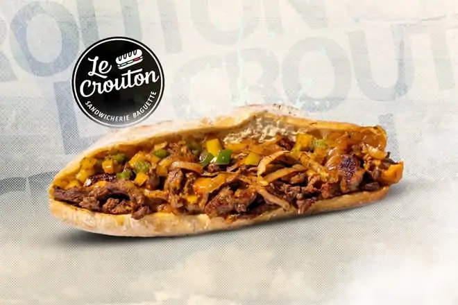Baguette classique ou tradition, émincé de bœuf, poivrons, oignons caramélisés. Le sandwich qui joue la carte du goût subtil et intense.
